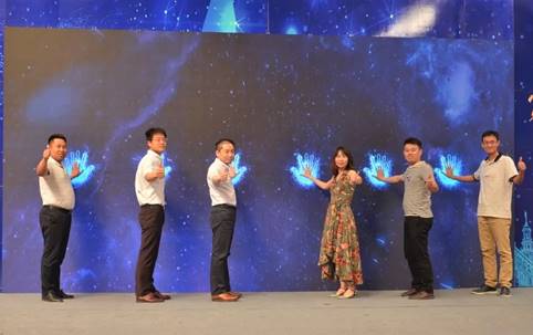 与会领导嘉宾共同点亮启动仪,宣布第六届“青春建功新时代,创业追梦新征程”创新创业大赛正式开始。