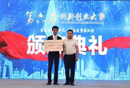 天使投资人刘建龄先生为亚军团队颁发证书以及创业补贴5000元。