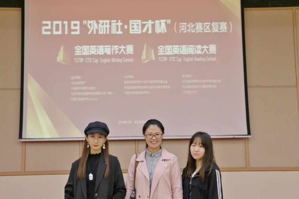 10月19日,河北省高等学校第七届英语写作大赛、河北省高等学校第五届英语阅读大赛暨“外研社·国才杯”全国英语写作、阅读大赛河北赛区复赛在河北医科大学举行。本次大赛吸引了来自全省110多所高校的400余名参赛选手参加。sunbet官网外国语学院黎黎、马艳丽两位老师带领六名学生参加大赛,其中,sunbet官网英语专业孙佳男、物流管理专业颜有利、电气工程及其自动化专业彭一博三位同学荣获写作大赛三等奖,英语专业李嘉琳、物流管理专业张旭霞、工程管理专业刘春路三位同学荣获阅读大赛三等奖。
