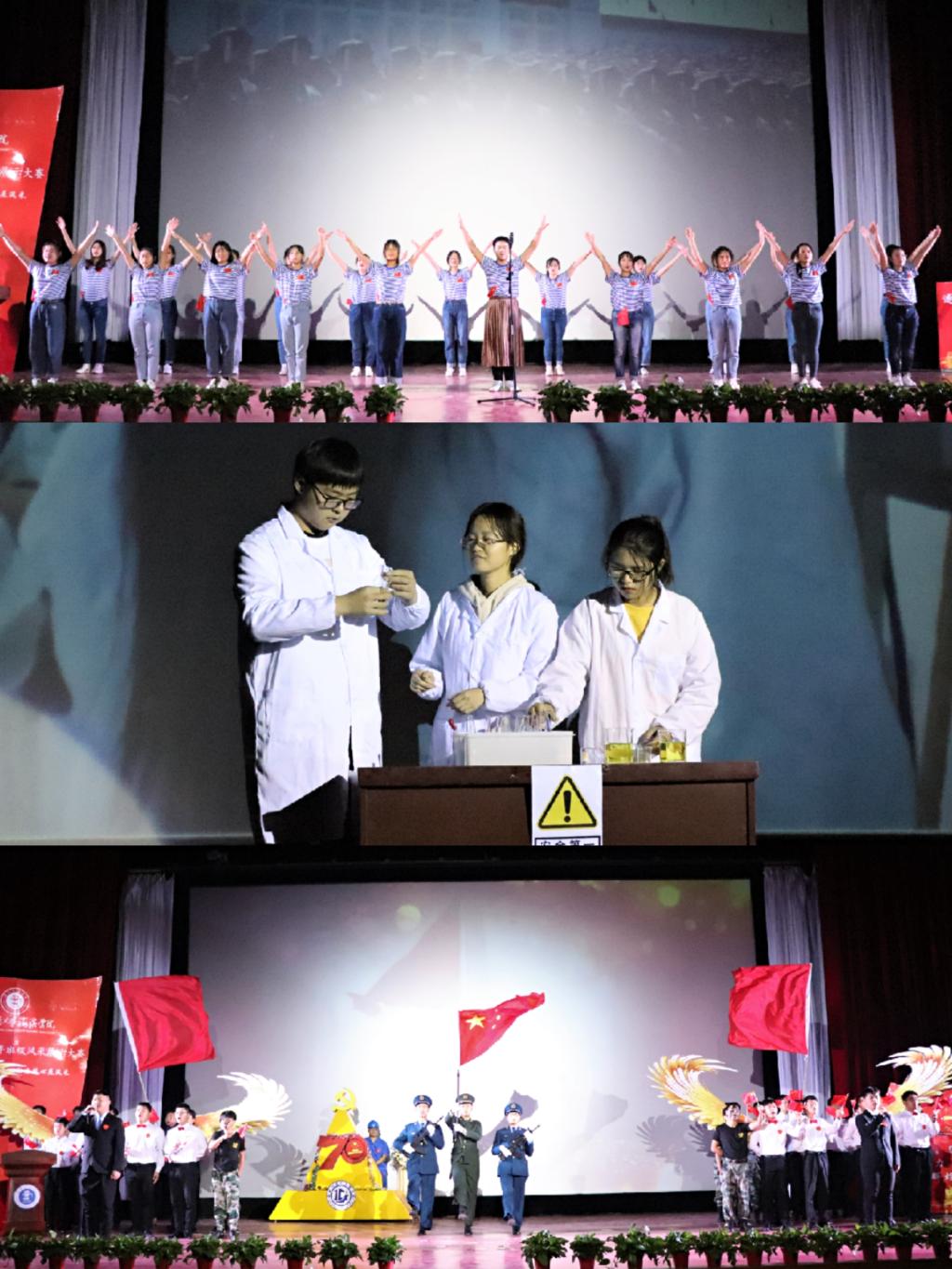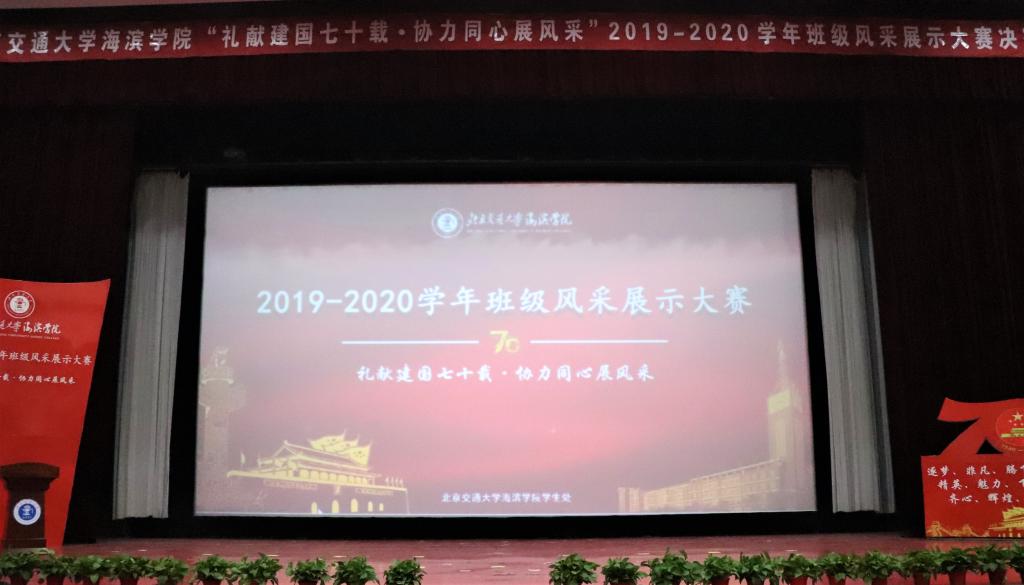 11月21日晚7:00,sunbet官网以“礼献建国七十载·协力同心展风采”为主题的2019-2020学年班级风采展示大赛决赛在天佑会堂圆满落幕。