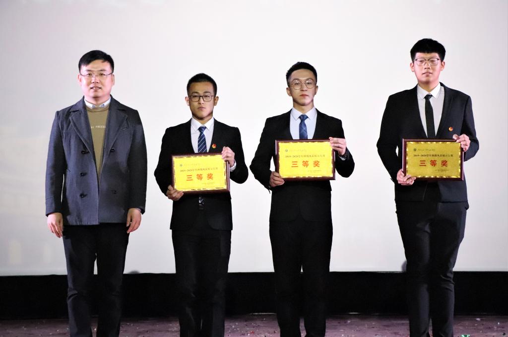 电子与电气工程学院副院长杨中建为三等奖获得者——环境设计1802班、机械1802班、信号1802班颁奖