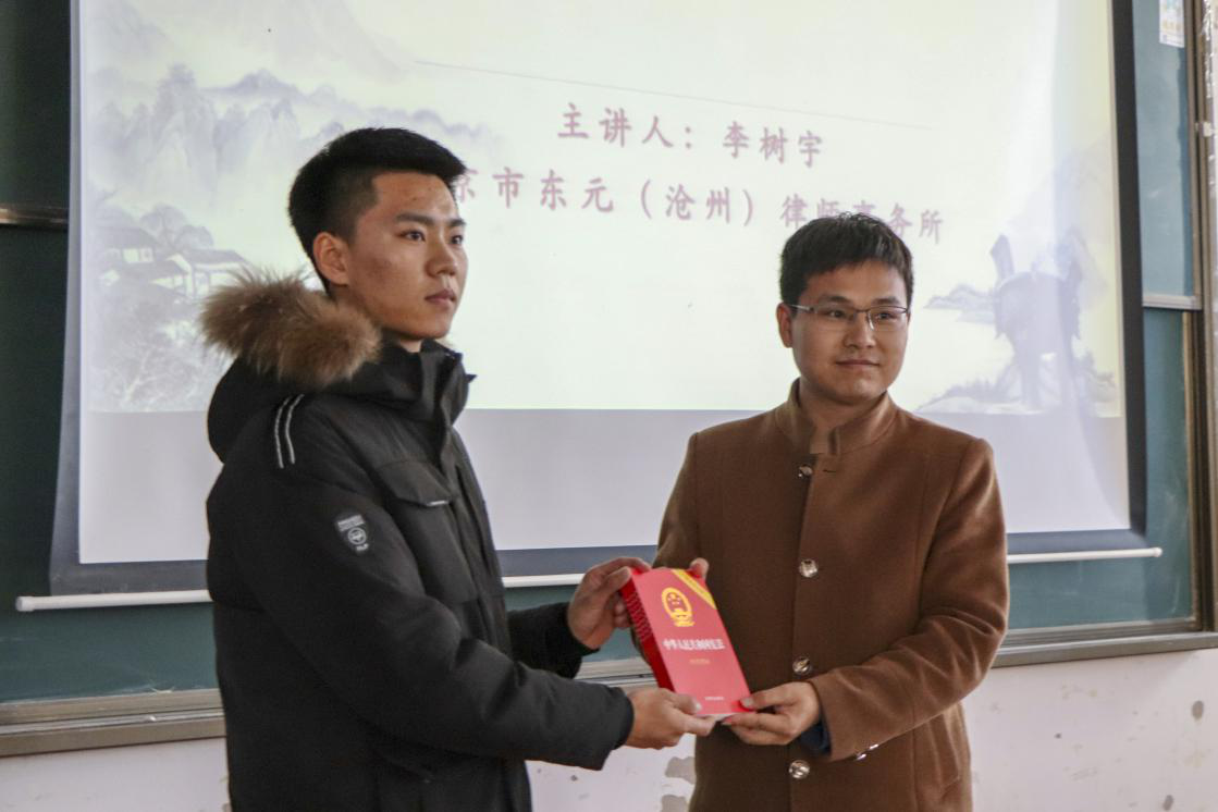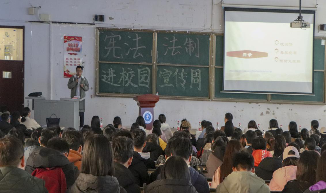 弘扬宪法精神,推进国家治理能力现代化,12月4日是我国国家宪法日。12月4日下午14:00,sunbet官网于思源楼225举办“青少年成长护航直通车---宪法进校园”法律宣传周讲座。黄骅市团委书记滕占涛出席本次讲座,sunbet官网学生处教师孔琳主持讲座。此次讲座特别邀请到北京市东元(沧州)律师事务所律师李树宇担任主讲人。