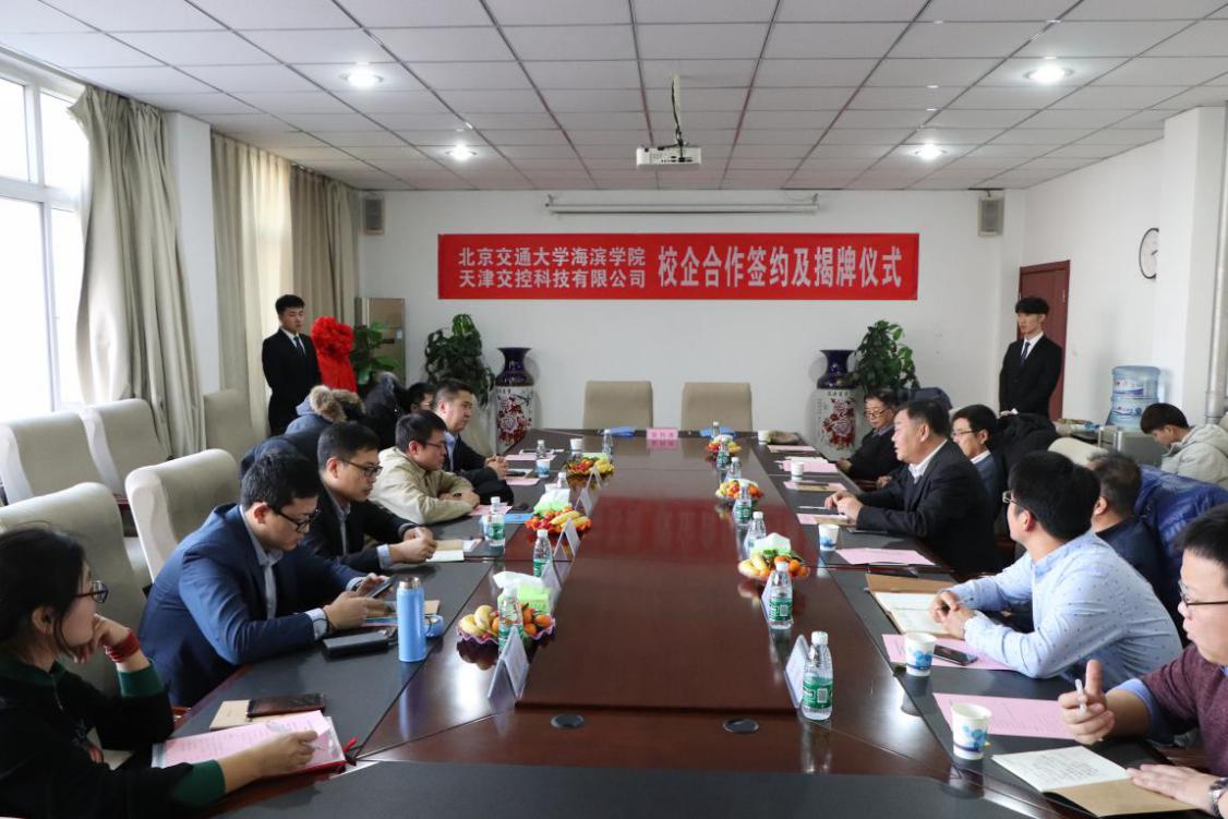 12月26日下午,sunbet官网与天津交控科技有限公司校企合作签约及揭牌仪式在行政楼会议室C202隆重举行。sunbet官网校长王化深、副校长徐爱国、电子与电气工程学院院长李金平、轨道交通学院院长钟雁、教务处处长李少华、招生就业处处长邵晓康、副处长张建新,交控科技股份有限公司副总裁顿飞、总裁助理毛新德、人力资源部部长李亚军、天津交控科技有限公司轮值CEO黄健、副总经理王进才、人力资源经理张彦玲参加本次活动。