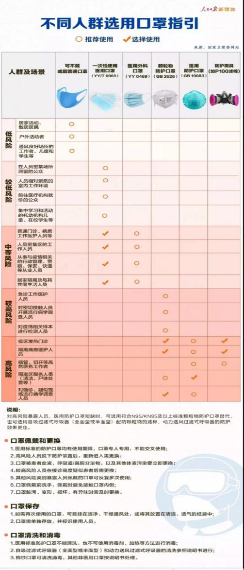 别急,就在 2 月 5 日国家卫健委等权威机构联合发布了《口罩选择与使用技术指引》,看看下面这张图,就知道什么时候该戴,什么时候可以不戴了。