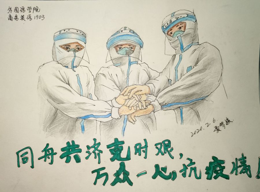 外国语学院2019级各团支部积极绘制防疫宣传海报,为武汉加油、为中国加油!