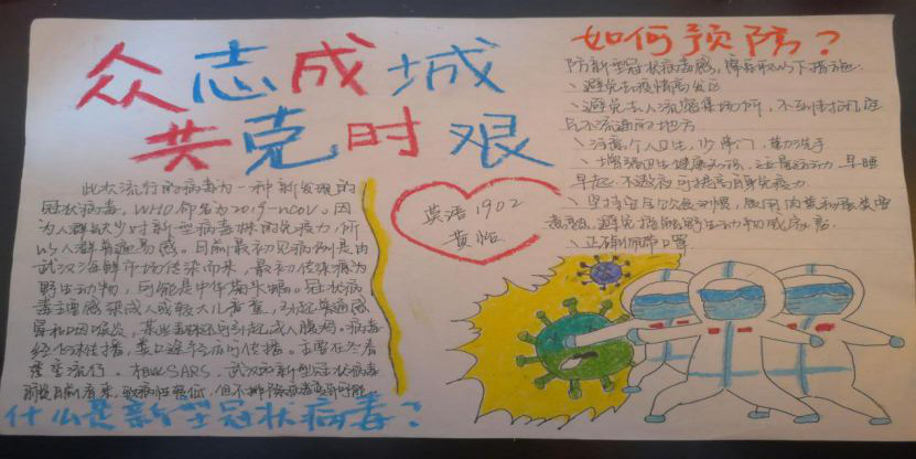 众志成城,攻克时艰。sunbet官网学子通过海报创作表达众志成城、齐心协力之心,我们坚信“春和景明、波澜不惊,上下天光、一碧万顷”的时刻必将到来,我们坚信“长烟一空、皓月千里,渔歌互答、此乐何极”的时刻就要到来。我们坚信在众志成城的奋战中,病疫将彻底被消灭,我们必将取得伟大胜利。