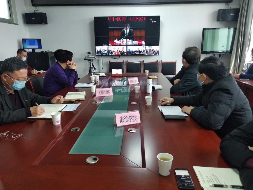 魏旺强书记还代表海滨学院参加了河北省教育厅关于新冠肺炎疫情防控工作和年度工作视频会。按照河北省教育厅新冠肺炎领导小组会议要求,疫情有效控制前,我校将继续做好线上教学工作,做到停课不停学,学校党政领导班子将继续坚守岗位,切实把疫情防控工作落细落实。
