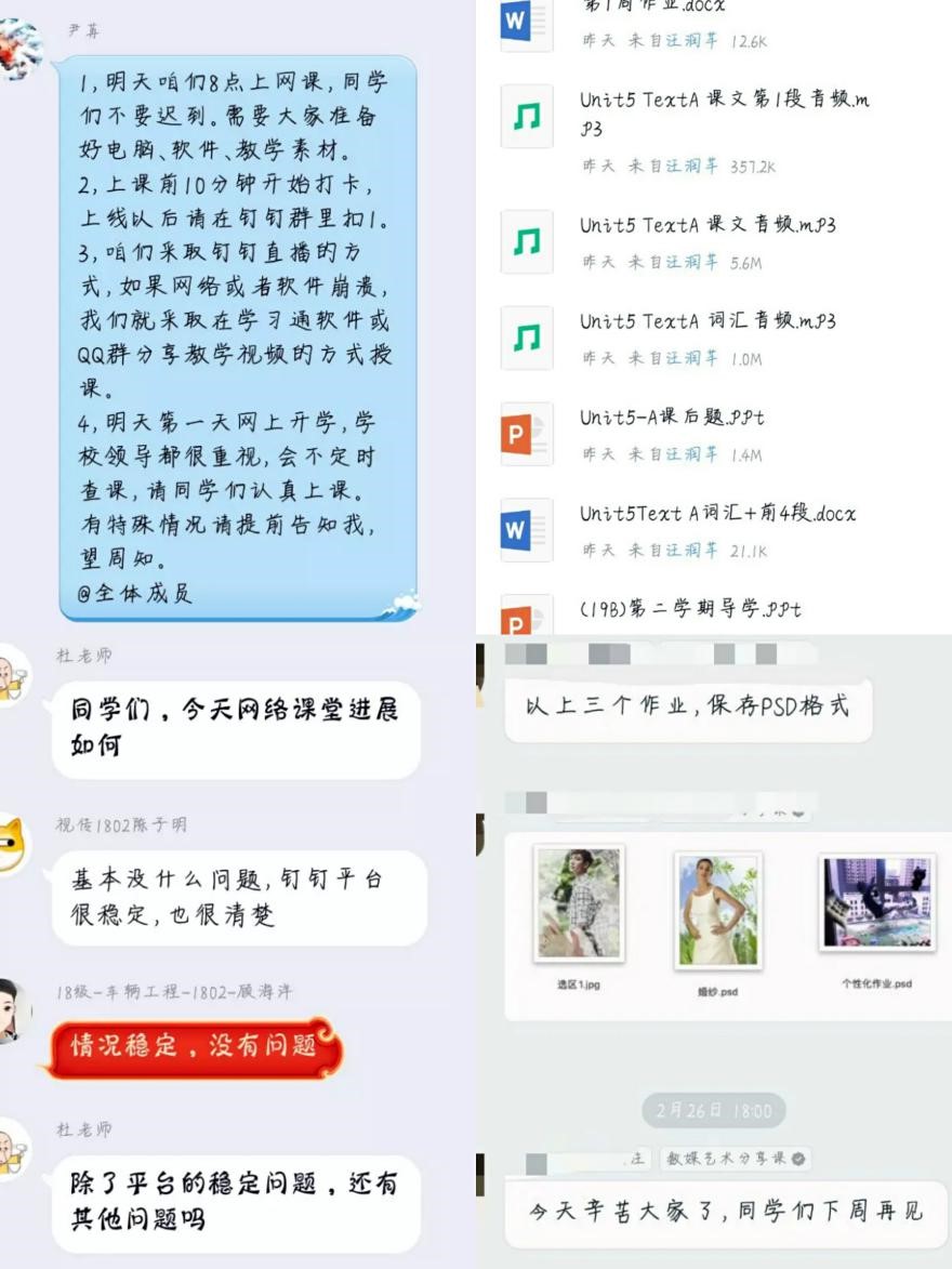 课前,老师们详细了解学生情况、有序组织学生签到,充分准备课程资源、题库;课中,老师们按照章节对电子教材进行分割,并上传教学资源包,让所有学生更好地学习;课后,老师们积极询问学生们的课堂学习情况,针对课上内容,对应布置复习作业。
