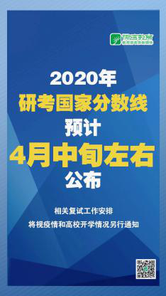 教育部新闻办公室官方微信平台微言教育消息,教育部将尽快划定2020年国家分数线,预计4月中旬左右公布,相关复试工作安排将视疫情和高校开学情况另行通知。
