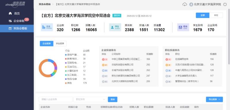 2020届毕业生春季大型空中双选会数据大屏