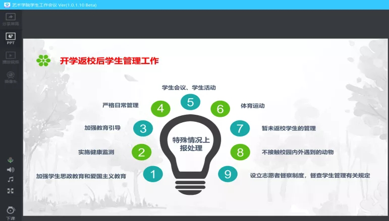 全体辅导员老师线上学习《高等学校新型冠状病毒肺炎防控指南》,按照防控指南的相关要求内容,从基本常识、防控措施、管理工作、心理关注四个部分,涉及基本防疫知识、返校前后的管理、心理方面的帮扶多个层面,进行了集体学习和研讨。