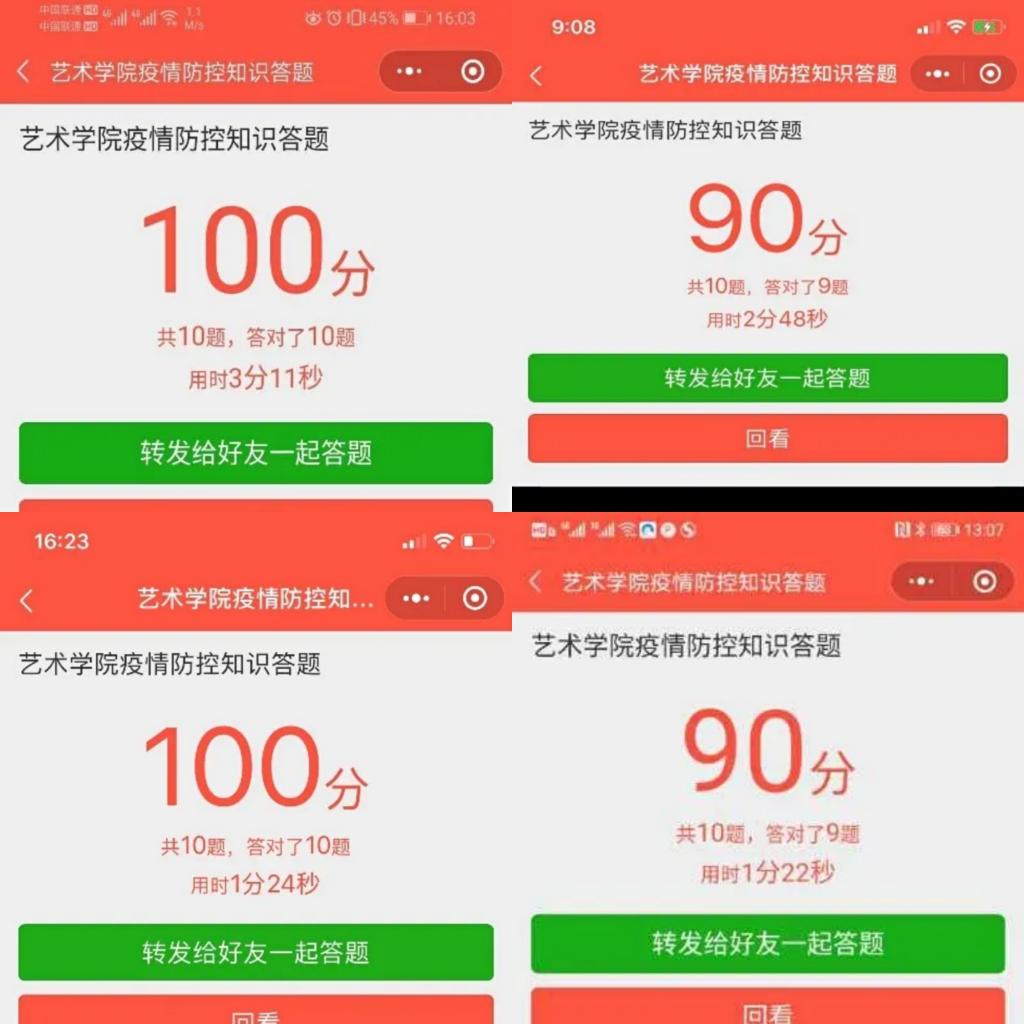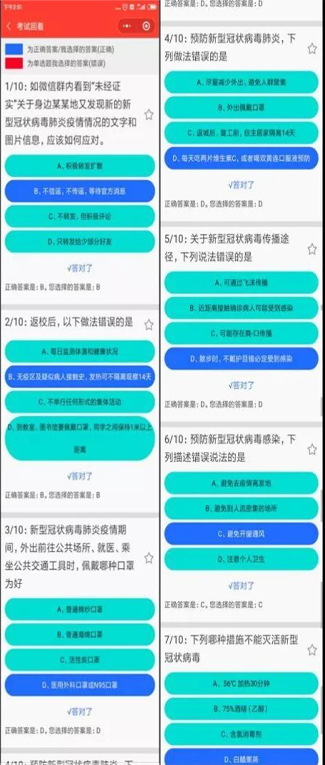 通过学院微信平台进行师生线上疫情防控知识“打榜”活动,以答题的形式更好地促进师生熟悉和巩固疫情防控相关知识,做好学生管理和自我防控。
