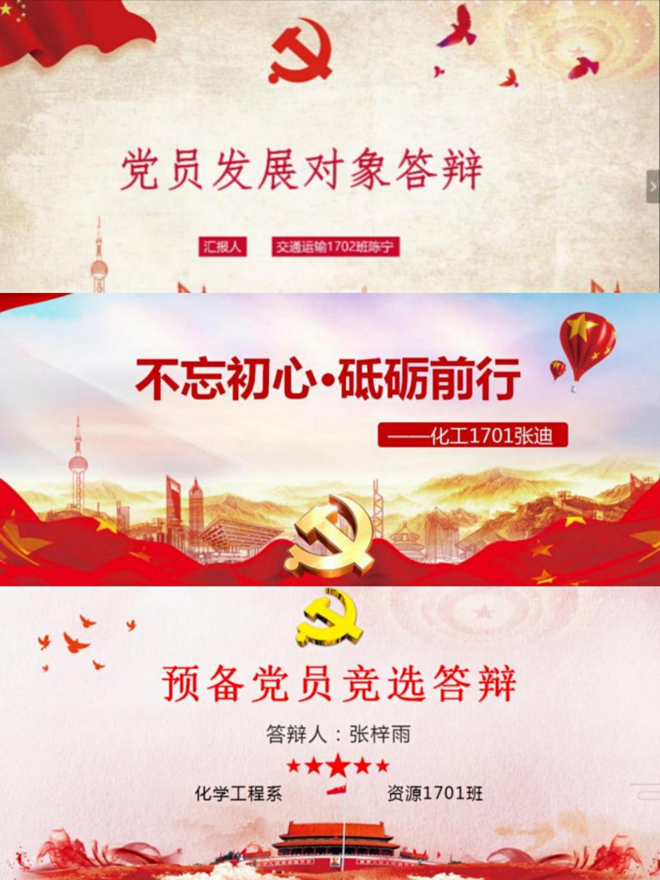 各位面试学生的基本情况、学生工作、所获荣誉和入党动机等方面在答辩中、言语上一一呈现。参加答辩的同学有的是出于对党的崇敬,希望个人能像党一样为人民谋福利;也有人因为想要与卓越的党组织同行,成为其中杰出的一员。各评委老师深入了解答辩同学的具体情况,并对党的认识、此次疫情党员先进性的体现及作为当代大学生如何起到先锋模范作用等方面进行提问,考察其是否符合条件。