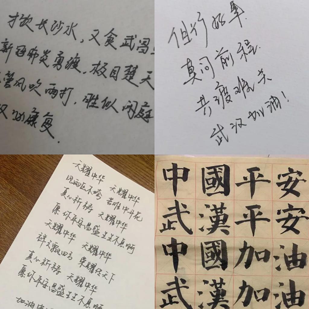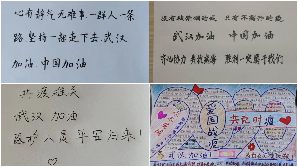 运输1903班全体同学各尽所能,怀着对祖国早日战胜疫情的热切期待,以及对武汉同胞的关怀,手写祝福、制作抗疫海报,传递和祖国一起战胜疫情的决心和对一线工作者的敬仰与祝福。