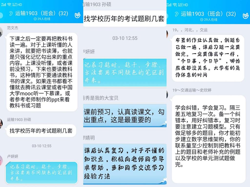运输1903班同学展开网课学习方法讨论