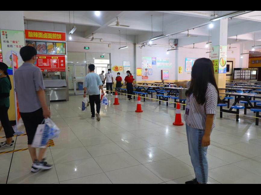 学校各单位没有工作任务的教职员工踊跃报名组成了校园服务志愿者队伍,专项负责学生返校期间的校园秩序维护、行李运送、食堂管理、宿舍管理、楼宇管理等工作。为有效解决宿舍到校门口距离远、搬运物品不便等问题,学校临时将校车全部用于行李转运,老师们搬运、驾驶、卸货一气呵成。为保障学校重点区域安全,巡逻工作组从早上7:00到晚上12:00不间断工作,为学生安全离校保驾护航。为保障宿舍、食堂、楼宇内良好秩序,老师们拿起体温枪,戴上护目镜,建起了一个个服务岗哨。