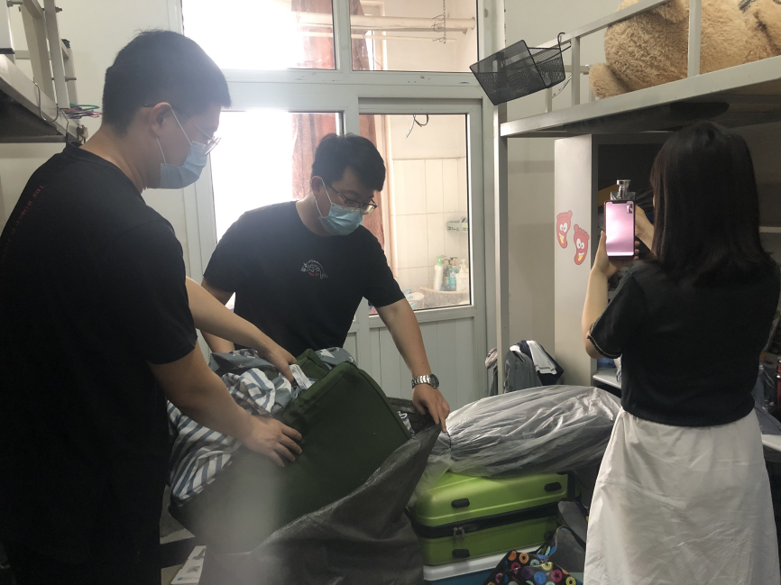 学校各职能处室和教学单位的教职员工们组织协调校内外资源,在扎实做好防疫工作的基础上,想学生之所想,急学生之所急,他们根据实际,总结经验,及时更正简化完善学生返校、离校流程,让学生办理毕业手续和在校生活更加便利。他们冲在前、干在前,校6门口、宿舍楼、快递点,处处可见他们的身影。拉条幅、收物品、运行李,老师们认真的样子让他们成为了学生心中“最可爱的人”。