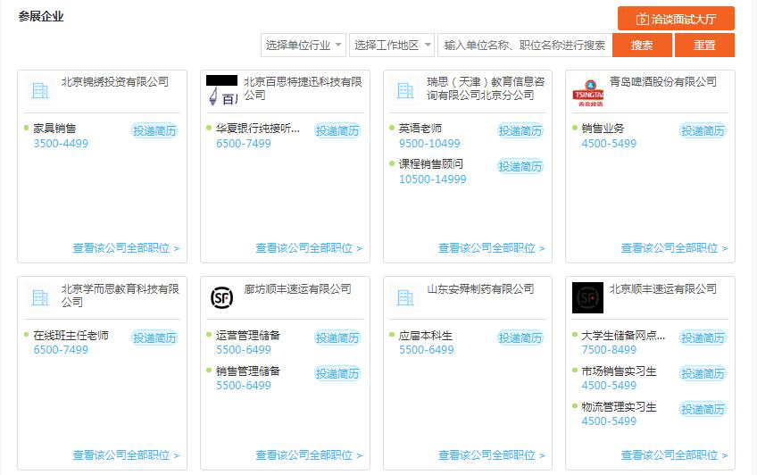 据了解,sunbet官网共审核通过132家企业“入驻”本次空中双选会,其中国企14家,三资企业7家,其他企业111家。在行业分布上,参会单位涉及交通运输、教育、建筑、计算机软件、金融、制造业等多个行业,均为sunbet官网相关专业紧密结合的代表性企业。此次公众双选会提供工作岗位共计4939个,工作岗位需求基本覆盖sunbet官网各学历层次和相关专业,用人单位总体呈现出质量层次高、地域分布广、提供岗位多样化等特点,尽最大限度满足2021届毕业生、2020届离校未就业毕业生们的行业与岗位需求。