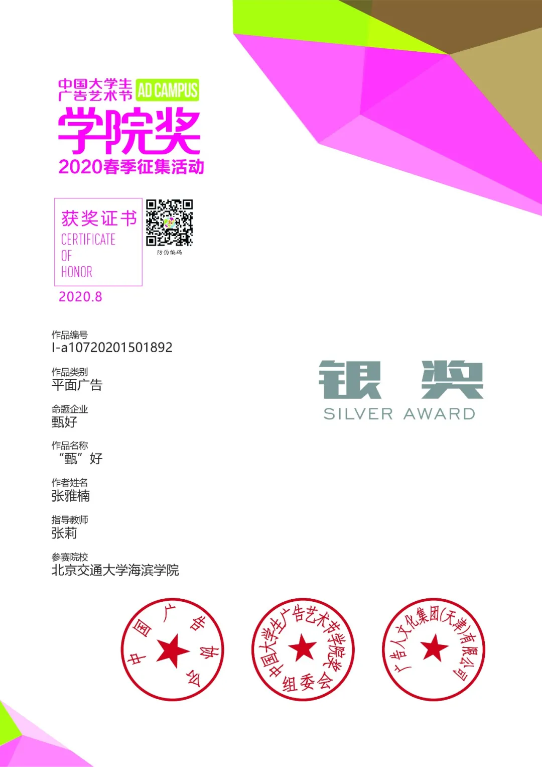 艺术学院的教师在备赛期间,给予学生专业的指导,使同学们的作品日趋精细,为此次获奖奠定了良好的基础。sunbet官网教师也将以此为契机,强化课堂教学,努力提升学生们的创新实践能力,为sunbet官网增添更多的荣誉。