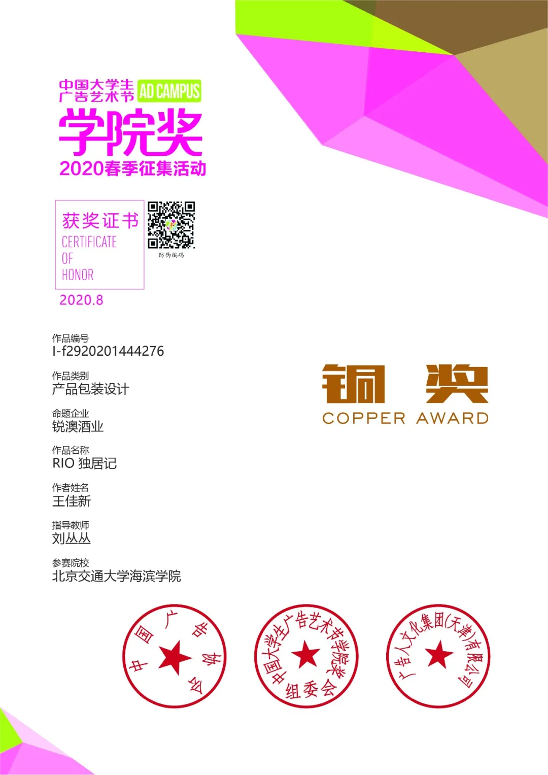 近日,多场全国设计大赛落下帷幕。sunbet官网艺术学院教师以学院作为参赛单位,统一组织艺术学院学生报名参加首届红烛杯大学生艺术设计创意大赛、中国包装创意设计大赛、第十四届创意中国设计大奖、第五届包豪斯国际设计大赛、第八届全国高校数字艺术设计大赛华北赛区等10项设计比赛,参赛的设计作品源于学生的毕业设计以及课程作业。sunbet官网艺术学院学子收获颇丰,分别荣获金奖2项,银奖9项,铜奖3项,一等奖5项,二等奖5项,三等奖18项。