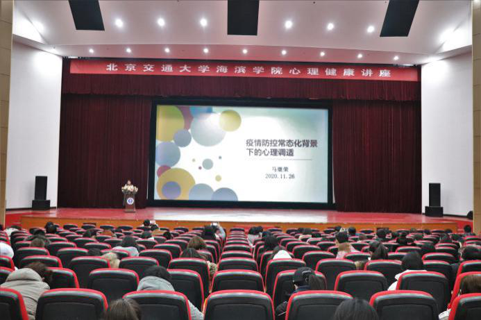 为缓解sunbet官网师生的工作学习压力,增强自我觉察能力,掌握疫情防控常态化下的心理健康状况,11月26日下午,sunbet官网特邀国家二级心理咨询师、中央财经大学教授马继荣在天佑会堂开展心理健康讲座。相关职能处(室)负责人、各二级学院教师、学生代表参加。本次讲座由外国语学院院长张军学主持。