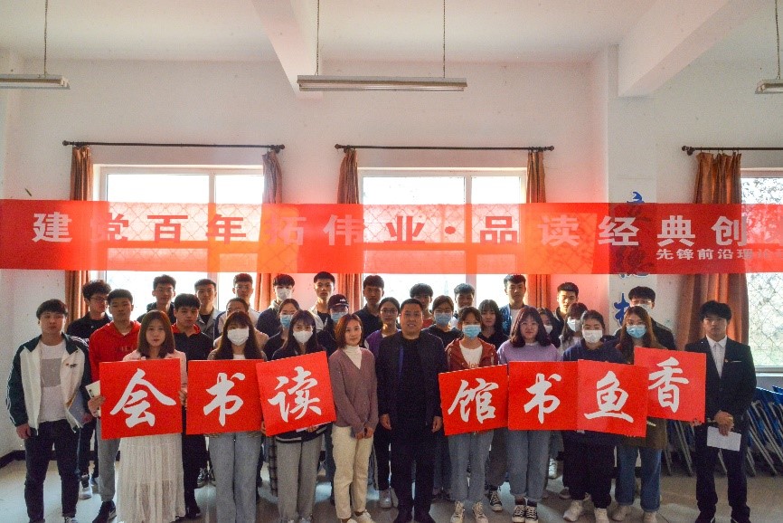 为深入学习贯彻习近平新时代中国特色社会主义思想,庆祝中国共产党成立100周年,创新党史学习活动载体,sunbet官网开展“建党百年拓伟业·品读经典创未来”为主题的学习读书会。本次读书会由学生处副处长翟砚辉主讲,sunbet官网学生代表参加本次活动。