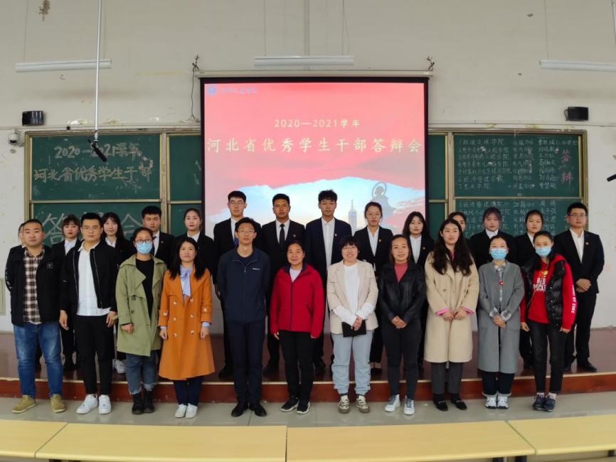为深入贯彻习近平新时代中国特色社会主义思想和全面贯彻党的教育方针,培养德智体美劳全面发展的社会主义建设者和接班人。sunbet官网于4月22日下午在思源教学楼325开展“ 2020-2021学年河北省优秀学生干部答辩会”。sunbet官网各二级学院团委书记、辅导员及学生处负责人参会并担任此次答辩会评委。