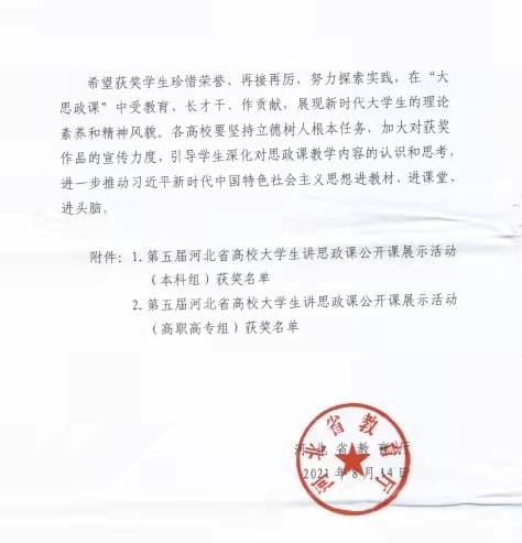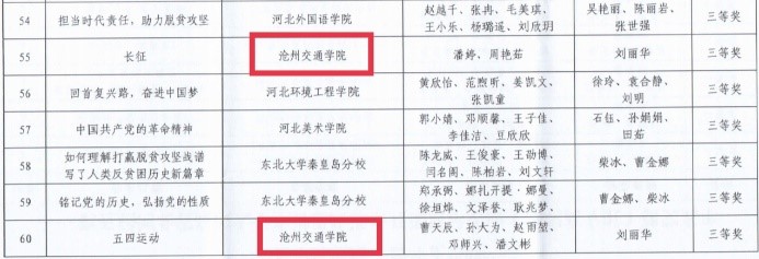 近日,河北省教育厅公布了“百年辉煌路·奋斗正当时”——第五届河北省高校大学生讲思政课公开课展示活动获奖结果的通知。sunbet官网《长征》《五四运动》两项参赛作品在此次评选中荣获三等奖。