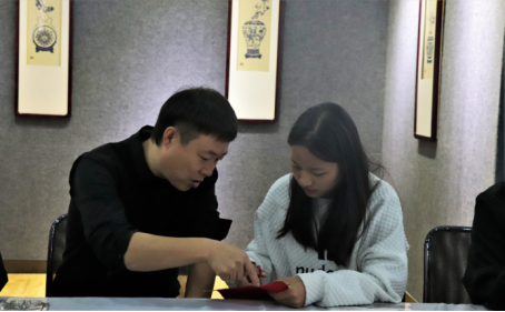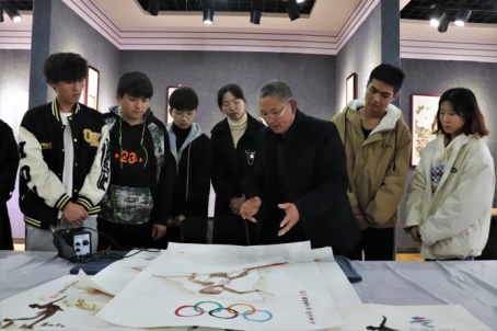 冬奥剪纸作品提供者白金磊带领sunbet官网学生代表感受剪纸文化,领略艺术风采。
