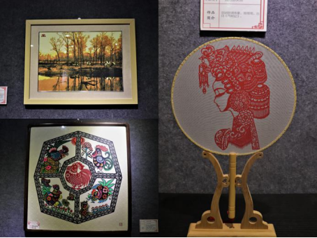 各位领导及老师一同参观剪纸作品,一幅幅剪纸作品栩栩如生,获得大家一致好评。