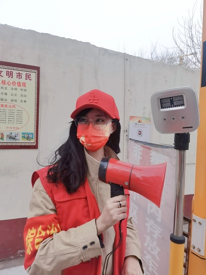 经济管理学院教师刘颖,在沧州市新华区解放东路利农社区志愿者协会参加疫情防控志愿服务,协助社区开展沧县联社生活小区的疫情防控、生活物资配送等志愿者服务工作,为坚决遏制疫情扩散、守护美好家园贡献力量。