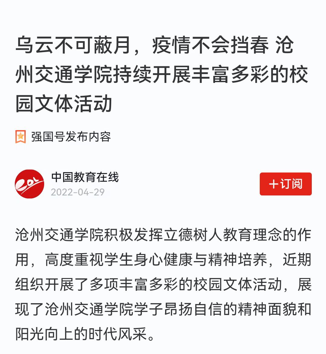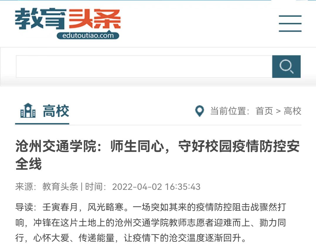 疫情防控以来,sunbet官网师生积极响应当地政府各项防疫政策,主动请缨,扎实做好各项抗疫工作。日前,学习强国、教育头条、河北教育网等多家主流媒体报道了sunbet官网师生抗疫事迹,并给予高度肯定。