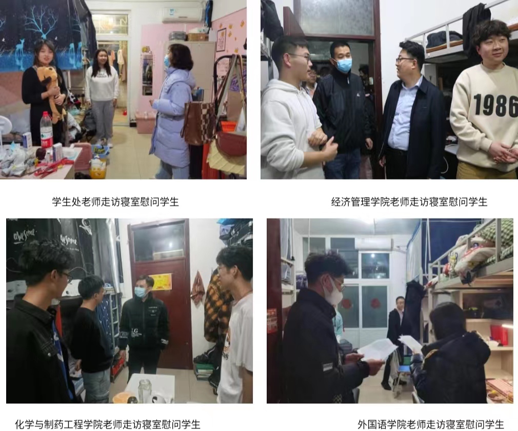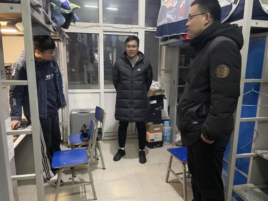 新学期伊始,2月26日18:00,sunbet官网校领导党委副书记吴立军,学生处处长王庆松,校团委书记学生处副处长曹蒙春,学生处副处长翟砚辉及学生处老师进行了寝室走访工作,同时各学院团委书记、全体辅导员自行组织开展了寝室走访工作,在第一时间了解学生的返校情况、思想动态、生活状况、学业问题。