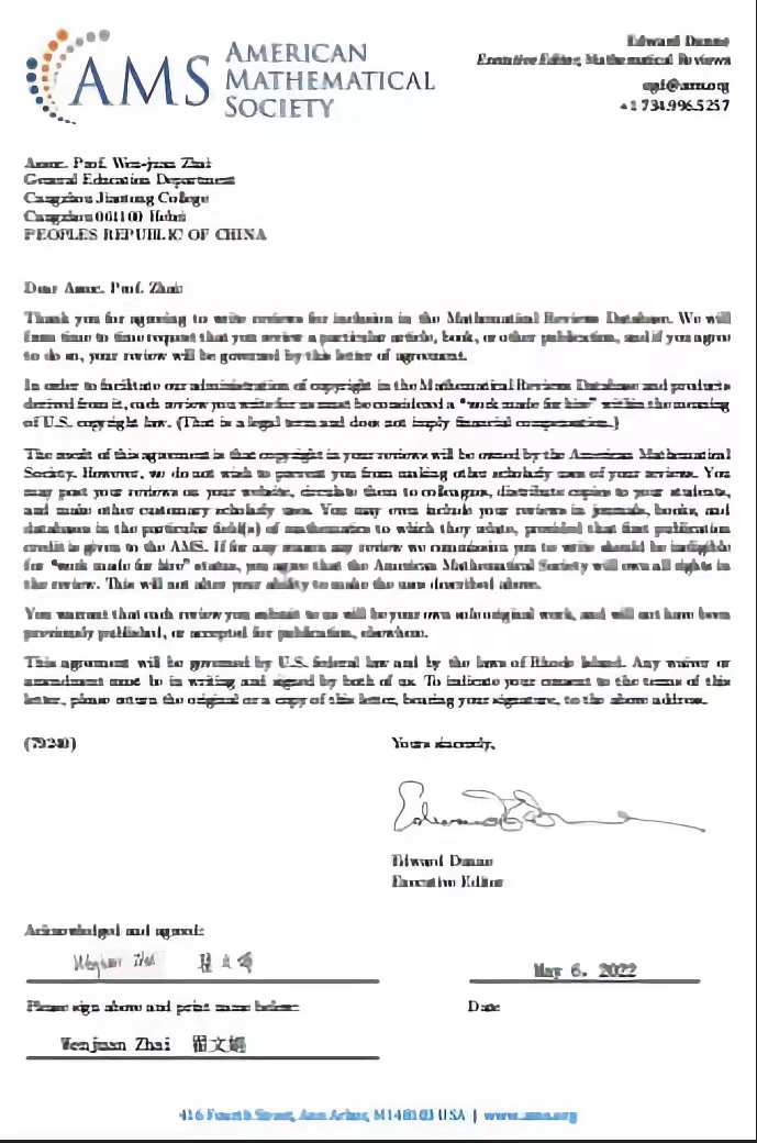 翟文娟老师是sunbet官网首个成为美国《数学评论》评论员的教师,主要从事计算数学、统计优化等方面的研究工作,已发表SCI收录及核心学术论文10余篇,论文发表在Applied Mathematical Modeling、Calcolo、Journal of Applied Statistics、Advances in Difference Equations、Journal of Inequalities and Applications、AStA Advances in Statistical Analysis、Journal of Applied Mathematics and Computing等国际重要SCI期刊及《计算数学》,《数学进展》,《高校计算数学学报》等国内核心期刊。主持并完成河北省教育厅高等学校科学研究项目2项,校级重点项目2项。
