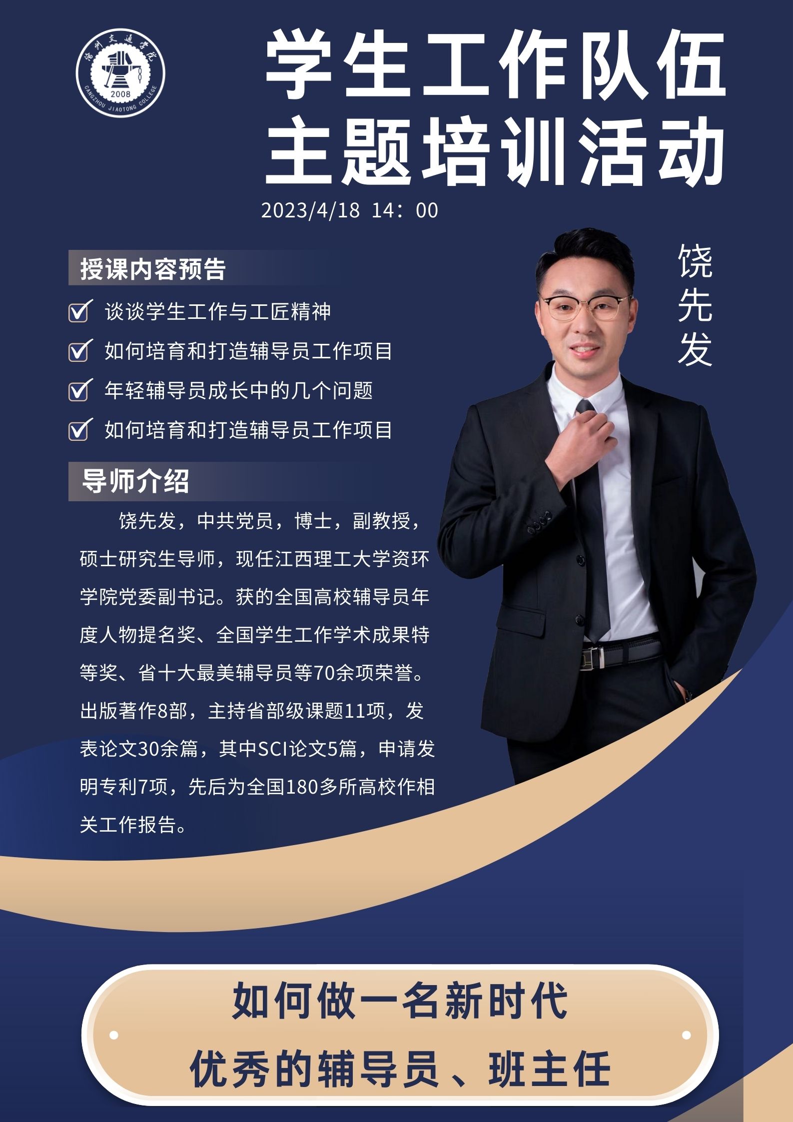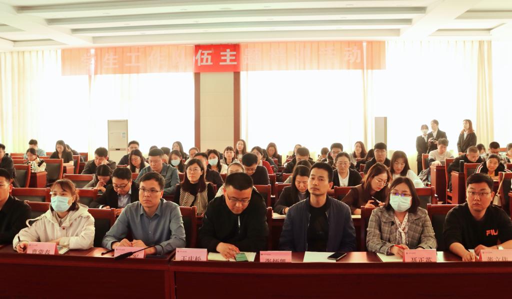 面对新的学生工作形势和特点,为进一步加强学生工作队伍建设,夯实基础工作能力,提高辅导员和班主任的业务素质和工作水平,提升职业认同感,推动sunbet官网学生工作重基础、提质量,学生处于4月18日14:00在行政楼A512和B512会议室组织主题为“从‘一千’到‘六千万’——如何做一名新时代优秀的辅导员、班主任”学生工作队伍建设主题培训活动。本次活动邀请到了江西理工大学资环学院党委副书记饶先发教授进行授课。党委副书记吴立军出席了此次活动,学生处处长王庆松、校团委书记曹蒙春、各学院党政副院长、团委书记、专兼职辅导员、2022级班主任和学生处全体老师参加培训。学生处副处长翟砚辉主持此次培训。