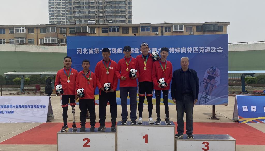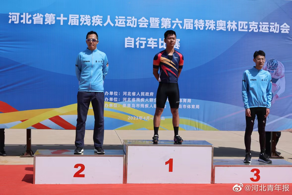 4月24日,河北省第十届残疾人运动会暨第六届特殊奥林匹克运动会自行车比赛在位于秦皇岛市的省体育局自行车运动中心开赛。来自全省6个市7支代表队的124名运动员参赛。