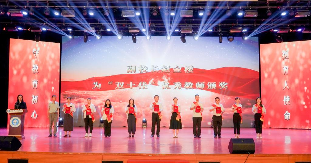 副校长赵金楼为获得“双十佳”优秀教师荣誉称号的教师颁奖。