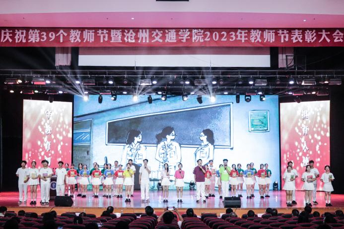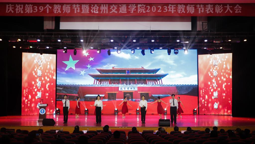 表彰之余,精彩尽显。歌曲《春暖花开》悠扬婉转的旋律,将歌声与花朵化为祝福,传递对师恩的感谢;合唱《和你一样》,用歌声表达了每一名教育工作者,都有着相同的目标、相同的情怀、相同的愿景;同学们的歌曲与朗诵《老师,谢谢您》,将感激之情、共鸣之声、坚定之志相互交织,致敬辛勤耕耘的园丁;歌舞表演《不忘初心—党旗飘扬的方向》,用嘹亮的歌声和优美的舞姿表达对老师们浓浓的敬意。