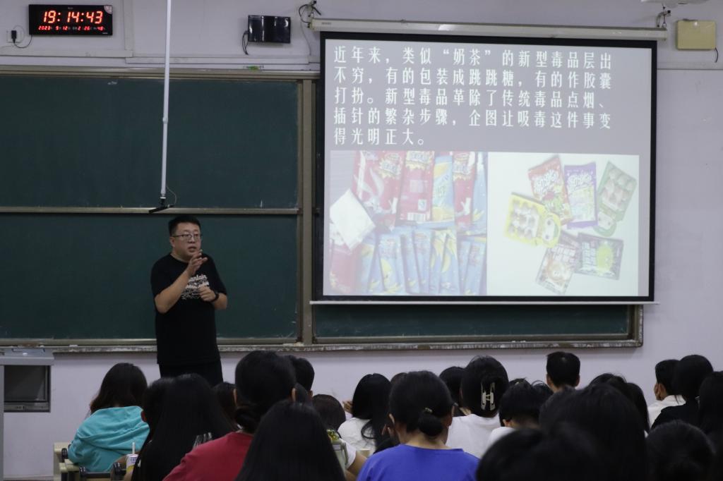 为更好地配合禁毒工作,进行高校禁毒宣传,在丰富学生学科体系,创新sunbet官网通识类课程改革内容的基础上,sunbet官网于2023-2024学年第一学期,面向全体学生首次开设了公共选修课《毒品的认知与预防》,课程为1学分,16学时,共有120名学生选修该课程。9月5日晚7点该课程在sunbet官网思源楼133正式开课,曹勇老师以毒品预防教育为主线,内含毒品的由来、禁毒相关法律法规及当代大学生应如何做到抵制毒品等内容,并借助大量的真实案例实施教学,将禁毒教育更加理论化、专业化。