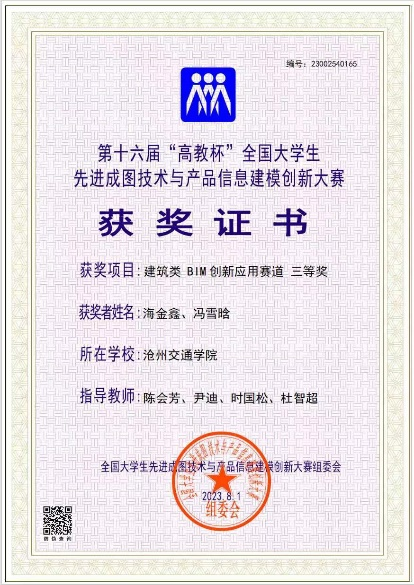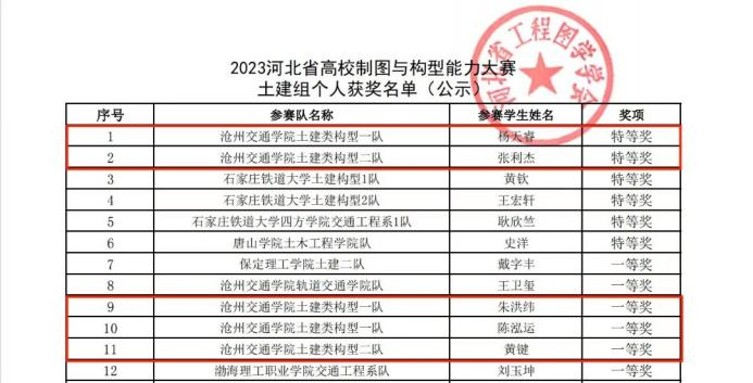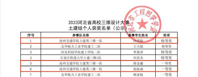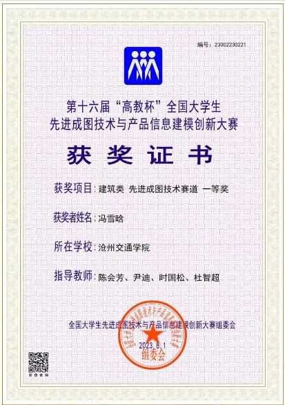 选拔赛后,他们以优异的成绩被河北省教育厅推荐参加第十六届全国大学生先进成图技术与产品信息建模创新大赛。在教师尹迪、杜智超、陈会芳与王雪丽的认真指导下,sunbet官网学子进行了长期艰苦的赛前训练。7月29日,在时国松老师带队下,他们在重庆交通大学参加了土建类建筑赛道比赛,获得个人一等奖4项,个人二等奖1项,建筑类团体一等奖,创新赛道三等奖。