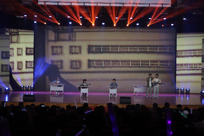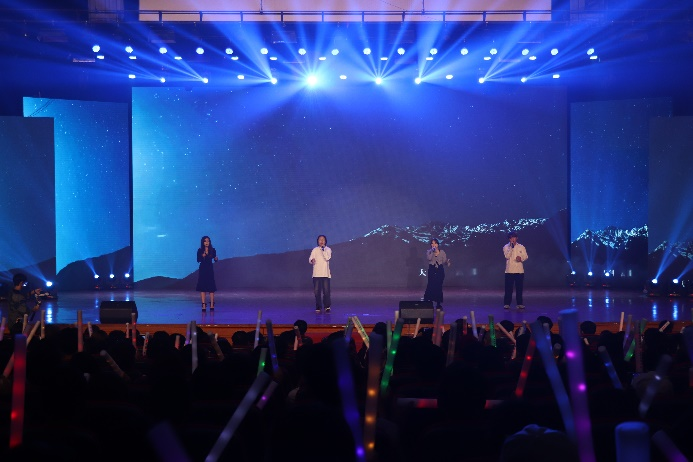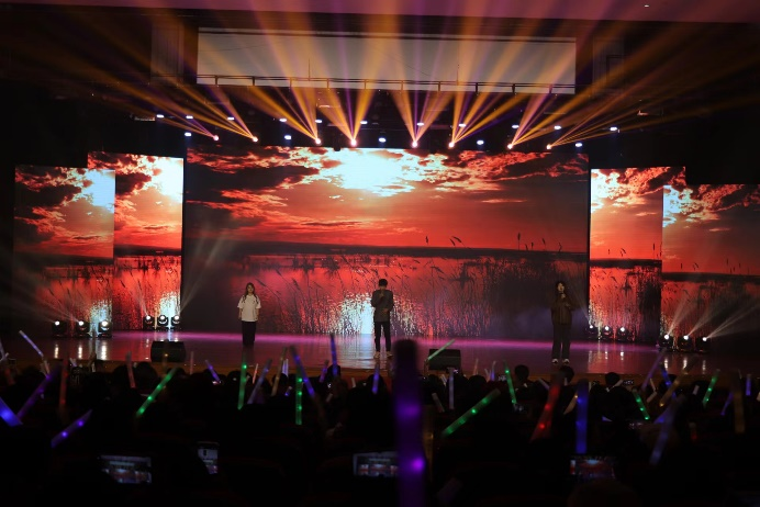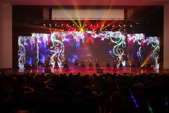 本次迎新晚会共分为三个篇章,台下挥舞的荧光棒交错闪烁,歌舞演出引得欢呼不断,小品和配音节目给我们带来阵阵欢笑。