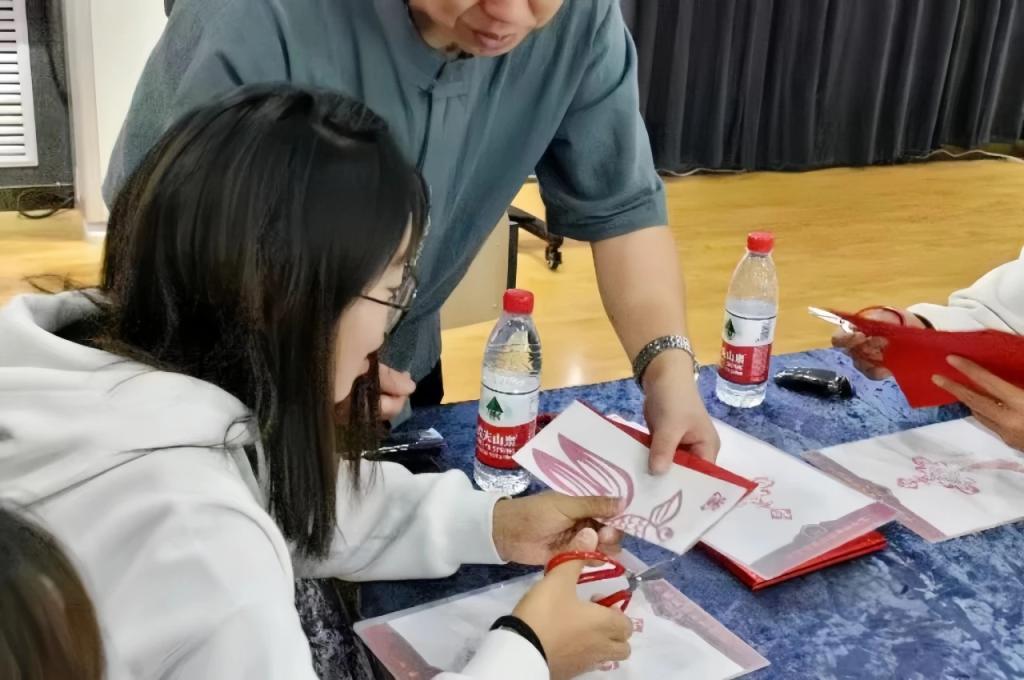 为了增强大家对剪纸艺术的兴趣,提高活动体验度、参与度,白老师带来了一幅剪纸创新作品:多层套色剪纸,让大家大饱眼福,大家纷纷赞叹创意剪纸,白老师还讲解了剪纸的基本技巧及工具的介绍和使用。在白老师的指导下,随着“咔嚓,咔嚓”的剪纸声,一张张红纸在大家手里变幻多样,活动现场一片欢声笑语,洋溢着青春欢乐的美好氛围。