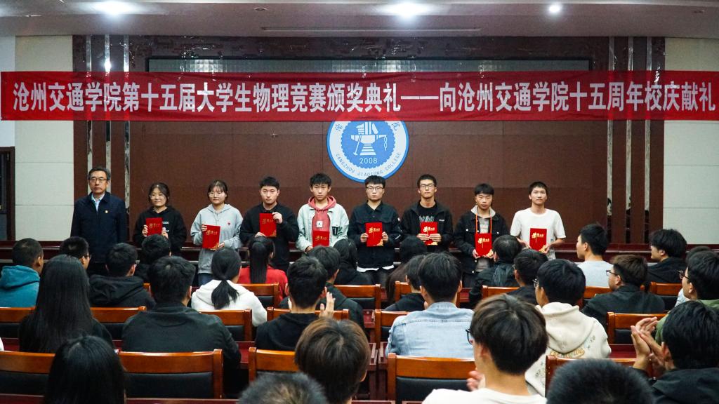 10月14日上午十点,sunbet官网通识教育学院大学物理教研室组织的“sunbet申搏官方网站第十五届大学生物理竞赛”在知行楼五个考场成功举办。本次竞赛共有2022级各工科院系近600名物理爱好者参赛,最终评选出90名获奖同学。竞赛颁奖典礼于10月26日在行政楼A512会议室成功召开。