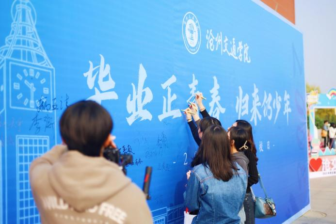 诺大的签名墙、老照片墙、文创宣传片、校友定制纪念品、新颖有趣的游戏海报……都在欢迎从各地返回母校的校友们。校友会工作人员和学生志愿者们以饱满的热情欢迎“归家”的校友。各学院也精心策划了羽毛球比赛、篮球友谊赛、校友企业宣讲会、师生茶话会、校友分享会等丰富多彩的系列活动。
