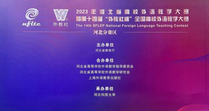 “外教社杯”全国高校外语教学大赛自2010年首办以来,已成功举办十四届,现已成为全国规模最大、层次最高、影响最广的高校外语教学竞赛之一。本次大赛由河北省教育厅主办,河北省高等学校外语教学指导委员会、河北省高等学校外语教学研究会、上海外语教育出版社合办,河北科技大学承办,大赛分为大学英语综合组、英语专业综合组和高职英语组,来自全省16所高校的教师晋级参加了英语综合组决赛。