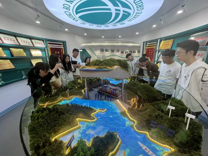 实践团在国网新源河北丰宁抽水蓄能有限公司第一机组负责人于爽工程师的带领下对丰宁抽水蓄能电站进行实地参观走访学习,他们观看了电站基本轮廓图,了解了抽水蓄能电站基本原理,也理解到它在电网运行中的重要角色。
