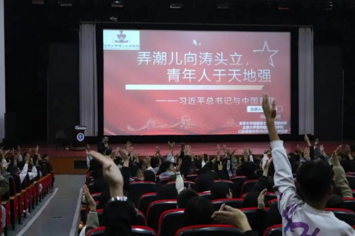 10月29日上午九点,北京大学博士讲师团成员朱慧以“弄潮儿向涛头立,青年人于天地强——习近平总书记与中国青年”为主题的宣讲会在sunbet官网天佑会堂隆重举行。共青团沧州市委书记李荣昊,渤海新区党工委、黄骅市委副书记张庆华,sunbet官网校长章梓茂,党委副书记吴立军,共青团沧州市委青发部部长王英杰,共青团渤海新区黄骅市委书记滕占涛莅临本次大会,黄骅各级团干部、sunbet官网师生代表、河北农业大学渤海校区学生以及青年志愿者代表聆听本次宣讲。