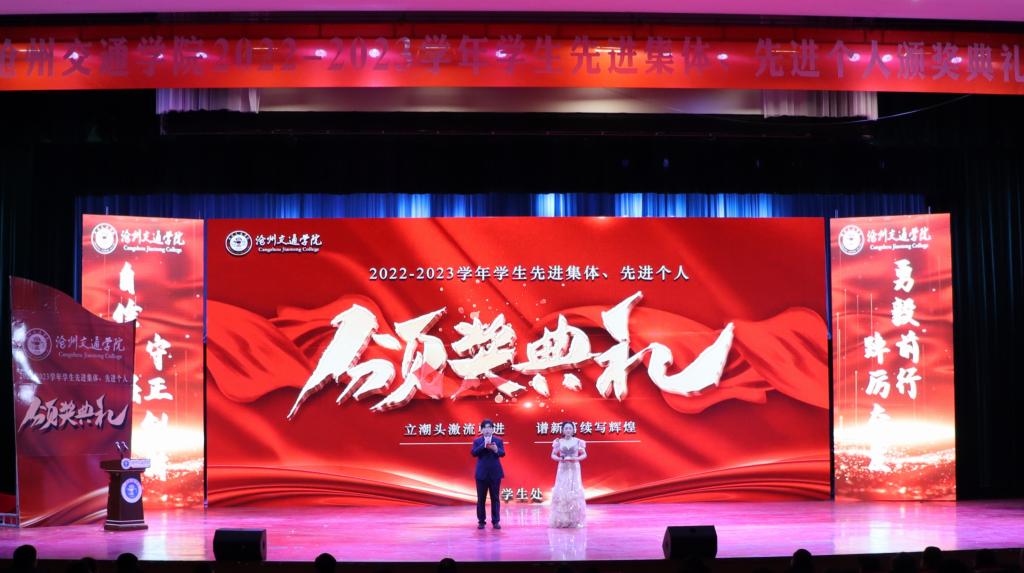 本次颁奖典礼以《立潮头激流勇进,谱新篇续写辉煌》主题视频开篇,介绍了2022-2023学年学生先进集体、先进个人以及各项奖学金的评选情况,展现了沧交学子勤于学习、敢于奋斗、勇为人先的卓越风姿。