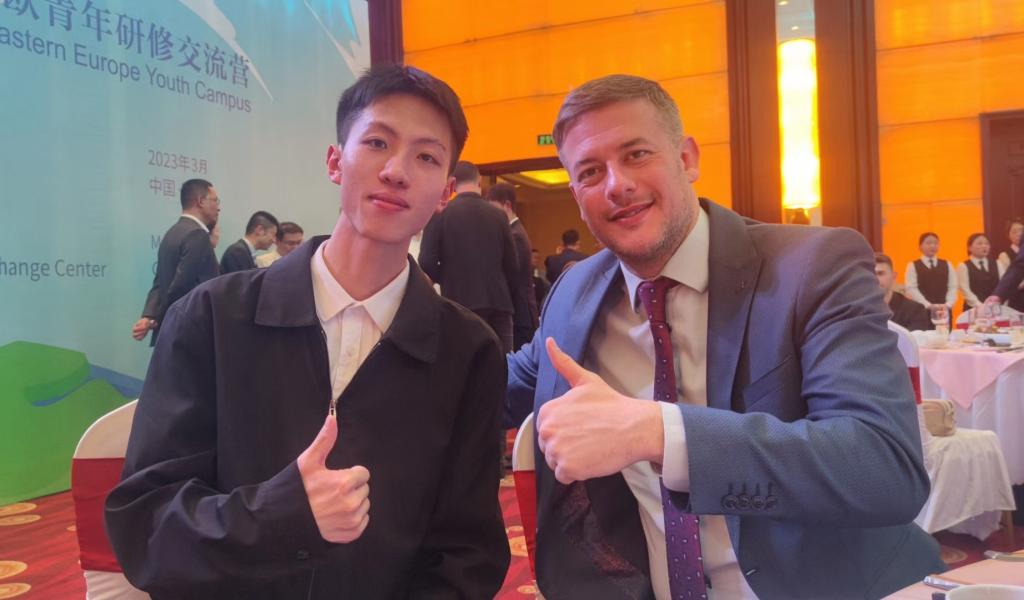 作为一名外国语学院的学生,王家兴热爱跨文化交际,向世界传播中国故事,与各国青年共话未来。在中国–中东欧青年研修交流论坛中,他曾担任接待翻译工作,与中东欧合作局领导随行参加迎宾晚宴,为包括捷共副主席,塞尔维亚主席团及议会代表等来自波兰、捷克、斯洛伐克、匈牙利、罗马尼亚、保加利亚、塞尔维亚、波黑、北马其顿9个国家的外宾以及商务局局长和青年企业家协会会长等贵宾提供了交传翻译服务,凭借礼貌大方的品行和高质量口语沟通能力,得到了国内外领导的夸赞与认可。在课堂上,他除了学习英语和日语外,利用课余时间还自学俄语,也正是因此他能够在与外宾交流中快速拉近友谊,无论在工作中还是休息时总能与外国友人谈笑风生。塞尔维亚的议会代表马尔科·希扬:“He is a very sociable guy。”