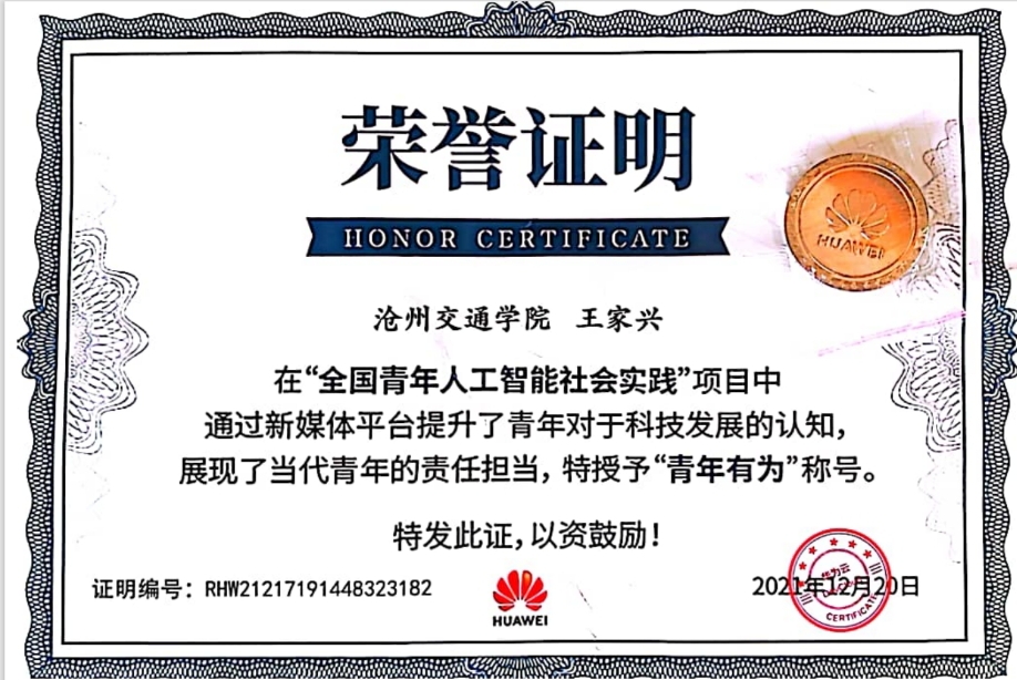 王家兴表示,自己十分荣幸能够获得中国大学生“自强之星”的称号,他认为,我们作为青年一代,无论何时都要坚定心中的信念,即便身处逆境也要奋力前行。在学习科学文化知识的同时不仅要注重道德修养,更要充实自己的精神世界。多一份善良,多一份真诚,世界是一个地球村,人与人之间更多的应该是尊重与友爱,绝不能只局限于生活的苟且,更要追寻诗和远方,以开放、包容、平等、互助的态度对待每一个人,让和平与爱的花朵开遍世界每一个角落。